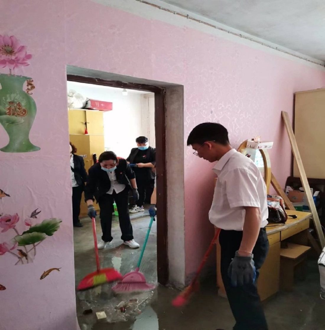 28日上午,巫宿琴再次帶領(lǐng)支部黨員到被積水倒灌的居民家中為其清掃淤泥、打掃房屋?,F(xiàn)場(chǎng),大家分工合作,井然有序,有的鏟垃圾、有的拖地。在支部黨員和居民的共同努力下,將居民家中打掃得干干凈凈。